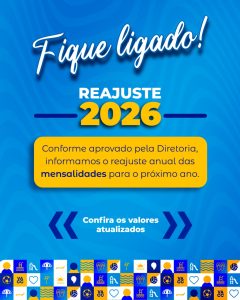 Conforme aprovado pela Diretoria, informamos o reajuste anual das mensalidades para o próximo ano.
